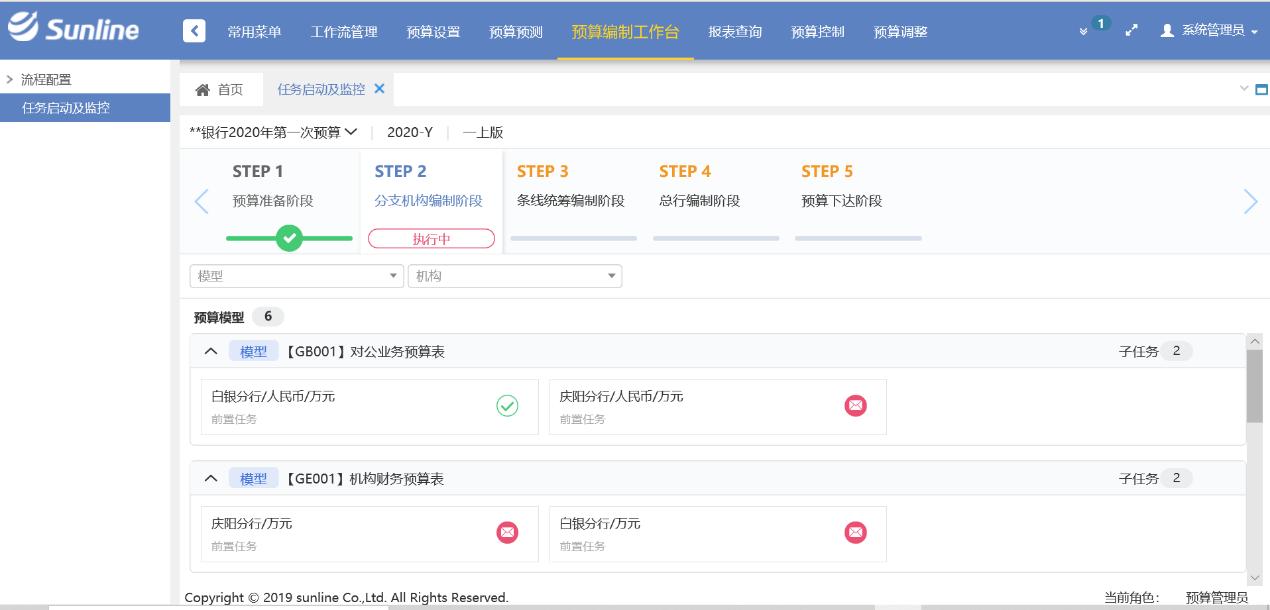 預算工作臺涉及工作流、任務流、審批流、待編制和審批任務、預算預警等功能,此模塊可解決該農商行任務混亂的管理痛點,實現(xiàn)上下級業(yè)務的高效連接,明確各級責任。其中,預算預警像是一個監(jiān)督工具,對遲報、漏報工作任務定時發(fā)送預警,有效監(jiān)督工作進展,全方位提升整體工作效率。