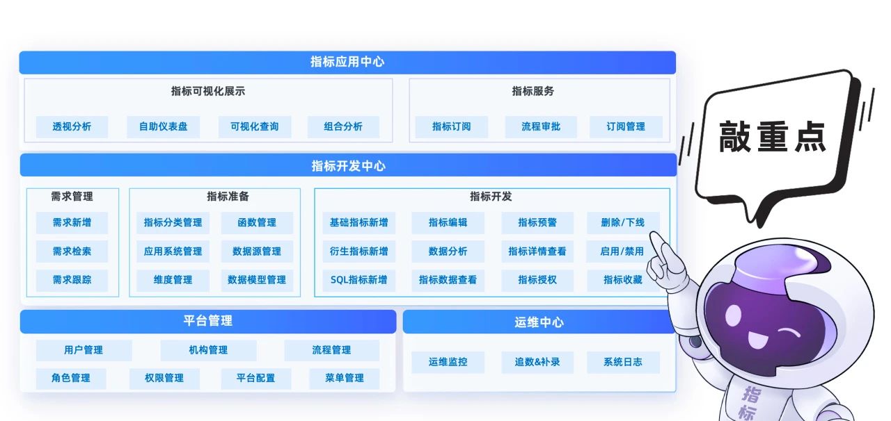 金融機構(gòu)高度重視!很City! “指標(biāo)”作為業(yè)務(wù)和數(shù)據(jù)的交匯點,已成為金融機構(gòu)量化實際業(yè)務(wù)效果的核心依據(jù),并廣泛應(yīng)用于其各項運營管理工作中。與此同時,監(jiān)管側(cè)也提出了一套數(shù)據(jù)報送的指標(biāo)體系規(guī)范,在自身精細(xì)化管理與監(jiān)管標(biāo)準(zhǔn)化要求的雙重驅(qū)動下,不同類型的金融機構(gòu)紛紛啟動指標(biāo)體系的建設(shè)工作。 但知易行難,許多金融機構(gòu)自建設(shè)初期就沒有形成完整的指標(biāo)管理抓手,隨之而來的指標(biāo)管理混亂問題也日益顯著,甚至嚴(yán)重影響了企業(yè)數(shù)字化深化的進(jìn)度和質(zhì)量。