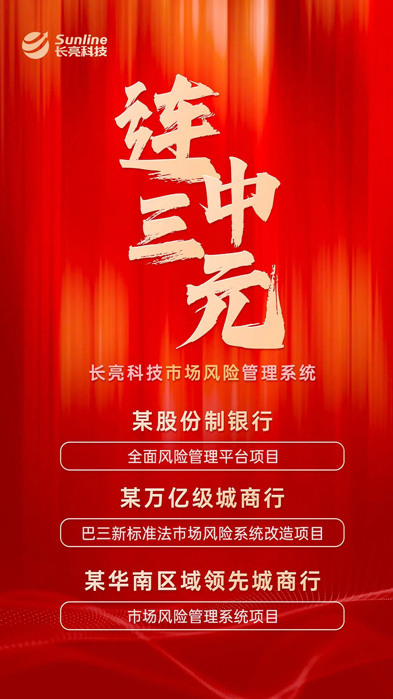近日,長亮科技再度迎來一波“中標熱”,其市場風險管理系統接連贏得某股份制銀行、某萬億級城商行、某華南區域領先城商行的青睞。依托在銀行風險管理領域的硬核實力,長亮科技將為客戶打造可靠的數字化平臺,助力其構建市場風險管理的護城河,并以標桿案例的“燈塔效應”持續引領行業向更專業、更高效、更智能躍升。