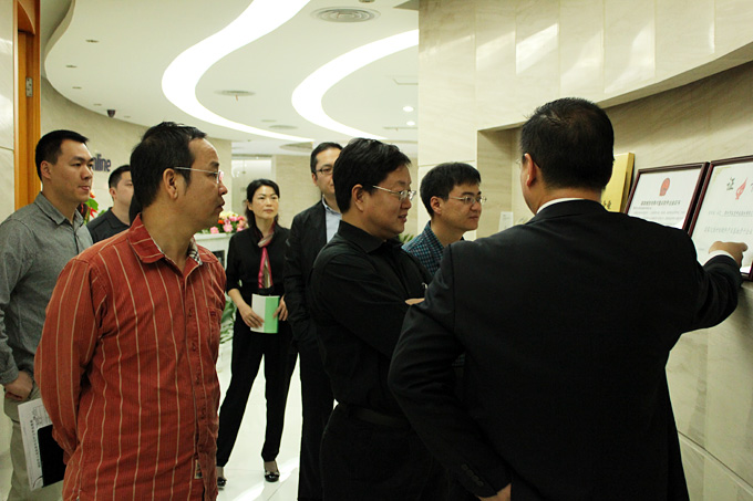 王東副區長(前排中)了解公司近年來取得的資質和榮譽