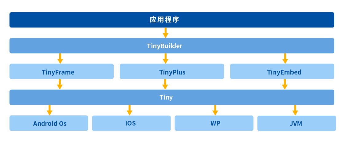 ?    通過TinyBuilder 構建應用程序,開發一套tml、css、腳本代碼,就可以實現一次開發,多平臺,多款終端,隨處運行。