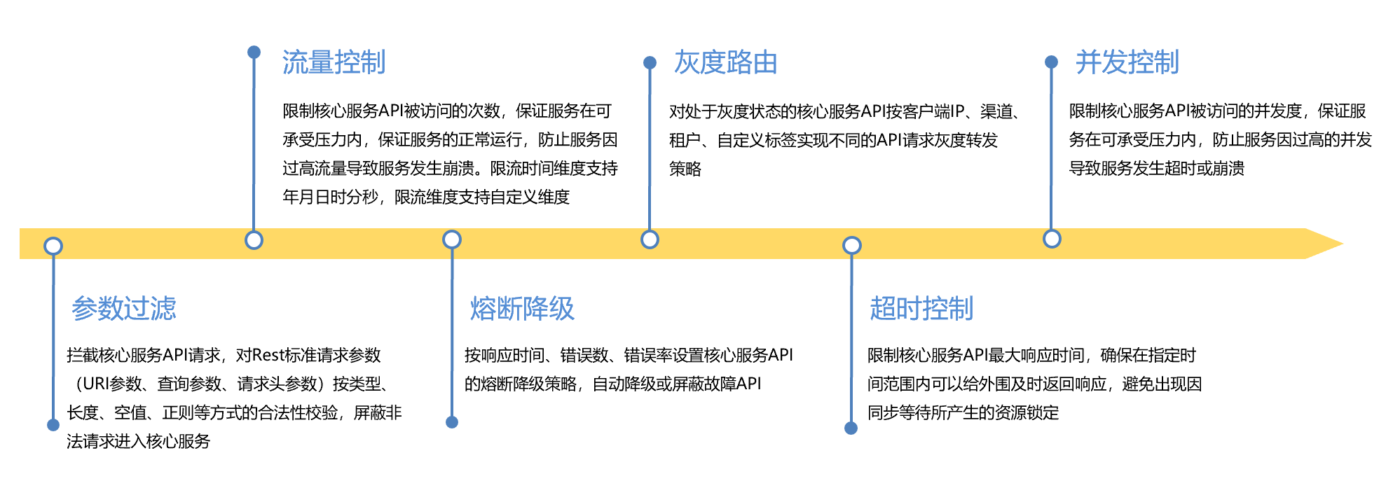 ● 治理體系:從限流控制、參數(shù)過(guò)濾、熔斷降級(jí)、灰度路由、超時(shí)控制、并發(fā)控制、訪問(wèn)時(shí)段控制等維度對(duì)API訪問(wèn)進(jìn)行全方位治理。