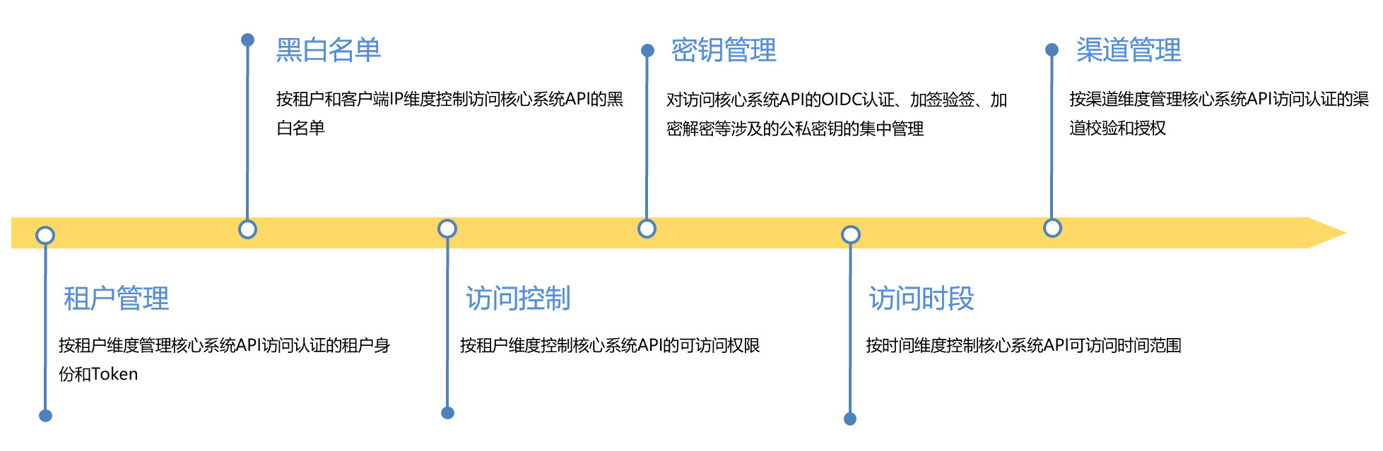 ● 安全控制體系:提供黑白名單、訪問(wèn)控制、密鑰、租戶認(rèn)證等多種安全體系,其中密鑰又從加密解密、加簽驗(yàn)簽和認(rèn)證授權(quán)等多種方式來(lái)保證API訪問(wèn)的安全性。