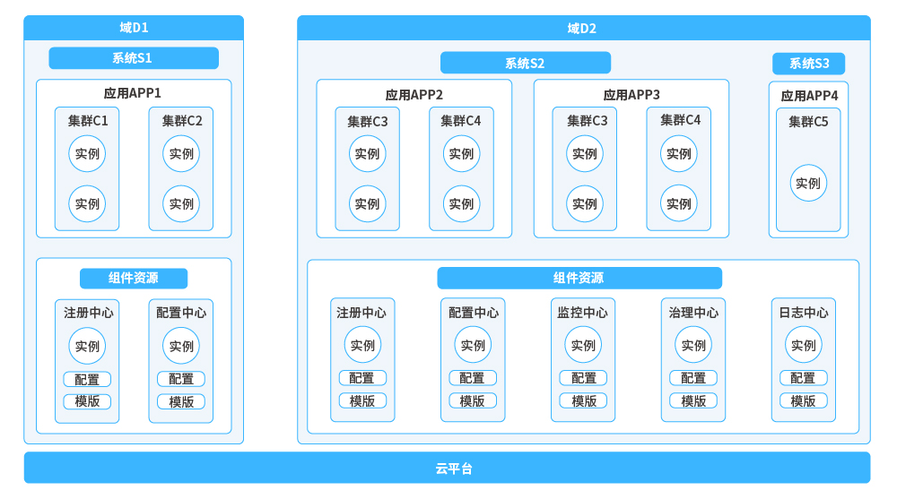 提供一套圍繞業(yè)務(wù)應(yīng)用和基礎(chǔ)組件的管理體系。在業(yè)務(wù)應(yīng)用管理方面,提供從域、系統(tǒng)、分區(qū)、應(yīng)用和單元(集群)等多維度管理方案,進(jìn)而細(xì)粒度的控制業(yè)務(wù)應(yīng)用接入;在基礎(chǔ)組件管理方面,可以對(duì)組件資源進(jìn)行統(tǒng)一管理,做到應(yīng)用零配置化即可使用組件。